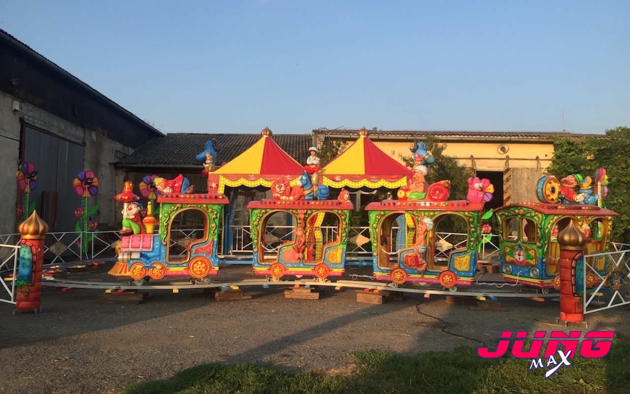 This 14-seat train can easily be transported on one trailer and the assembly and dismantling is super-fast. Very small children can enjoy this safe ride. They will go through an exotic land full of animals and creatures, in the dark, and with the lighting they will feel they are entering a magic world.