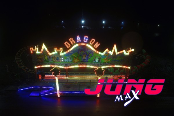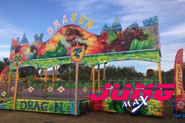 No need to fight our dragon. All you have to do is sit down comfortably and let yourself be rocked on its back. The dragon's body consists of six cars that seat up to 24 persons. You